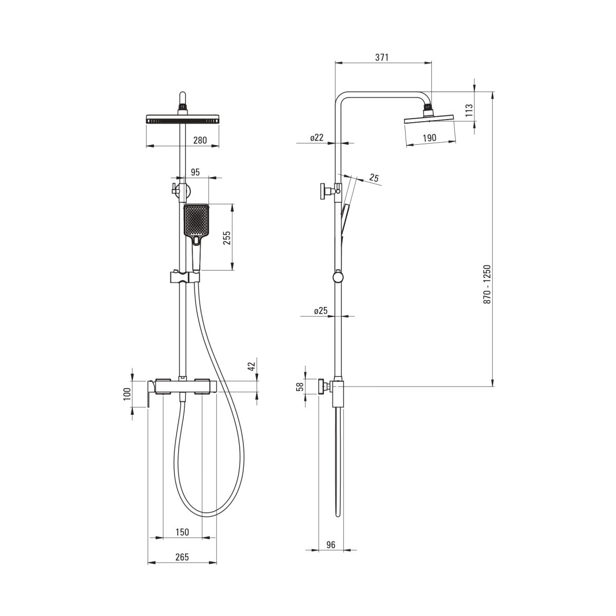 - Höhe der oberen Regendusche einstellbar