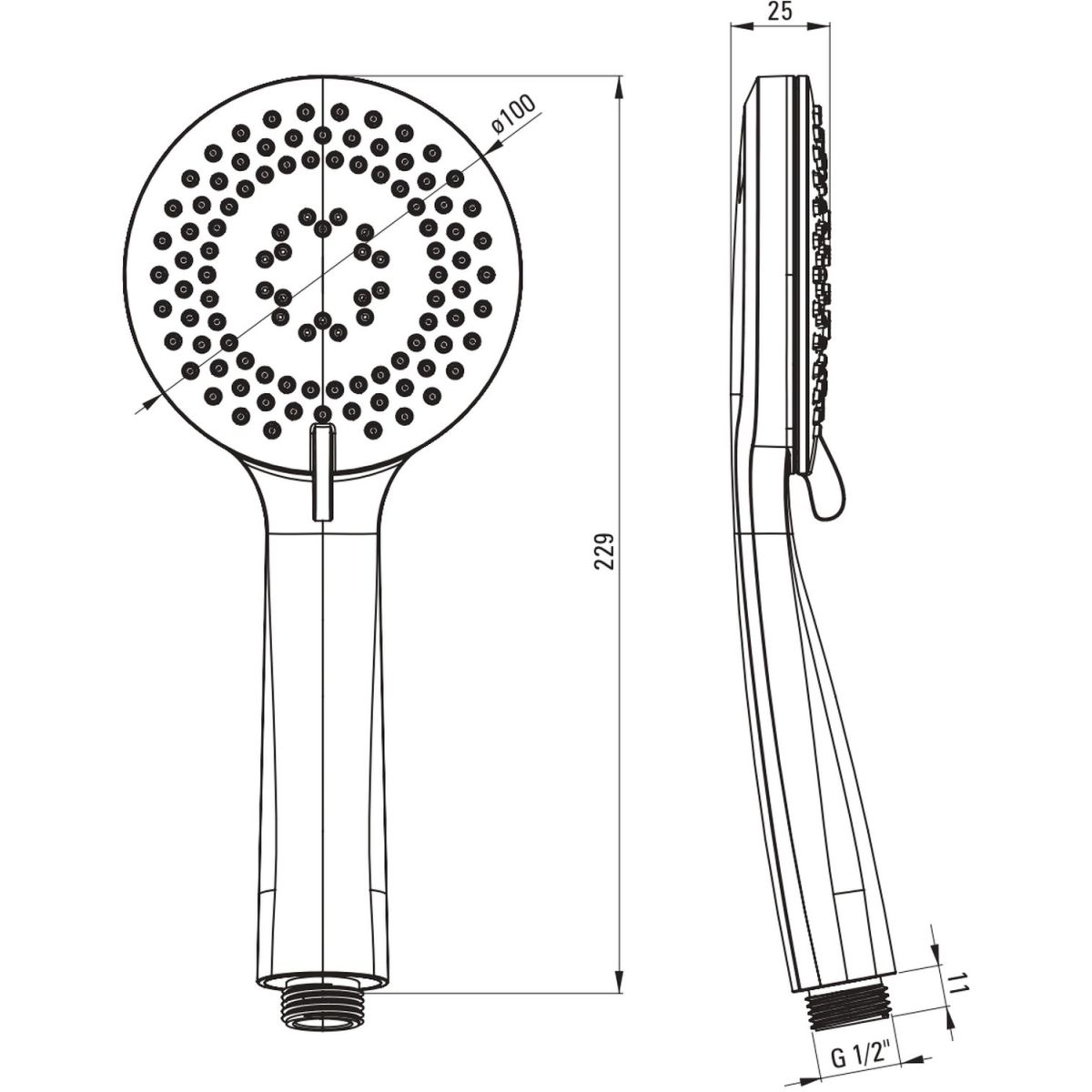 - 3-Funktions-Handbrause (Regendusche, Mischstrahl, Hydromassage) mit Anti-Kalk-System aus Kunststoff