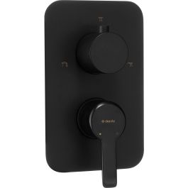 Das Außenelement für den Mischbatterie-BOX aus der Kollektion Arnika Nero zeichnet sich durch die für diese Kollektion typische schwarze, effektvolle, matte Oberfläche aus und ist eine perfekte Ergänzung für ein Badezimmer, das mit anderen Elementen der Kollektion eingerichtet wurde. Die satinierte Beschichtung, die mit einer innovativen Galvanisierungsmethode aufgebracht wird, harmoniert wunderbar mit den geometrischen Formen der Produktelemente – dem Körper, dem Hebel und dem Umschalter für die Wasserquelle. Das hier vorgestellte äußere Element des Unterputz-BOX kann jederzeit entfernt werden, um Zugang zum Wasserhahnkopf oder anderen normalerweise nicht sichtbaren Elementen zu erhalten. Durch die Unterputzinstallation lassen sich unattraktive Teile der Armatur wie Rohre, Winkelstücke und Verbindungsstücke verbergen und ein minimalistisches, modernes Badezimmerdesign schaffen.