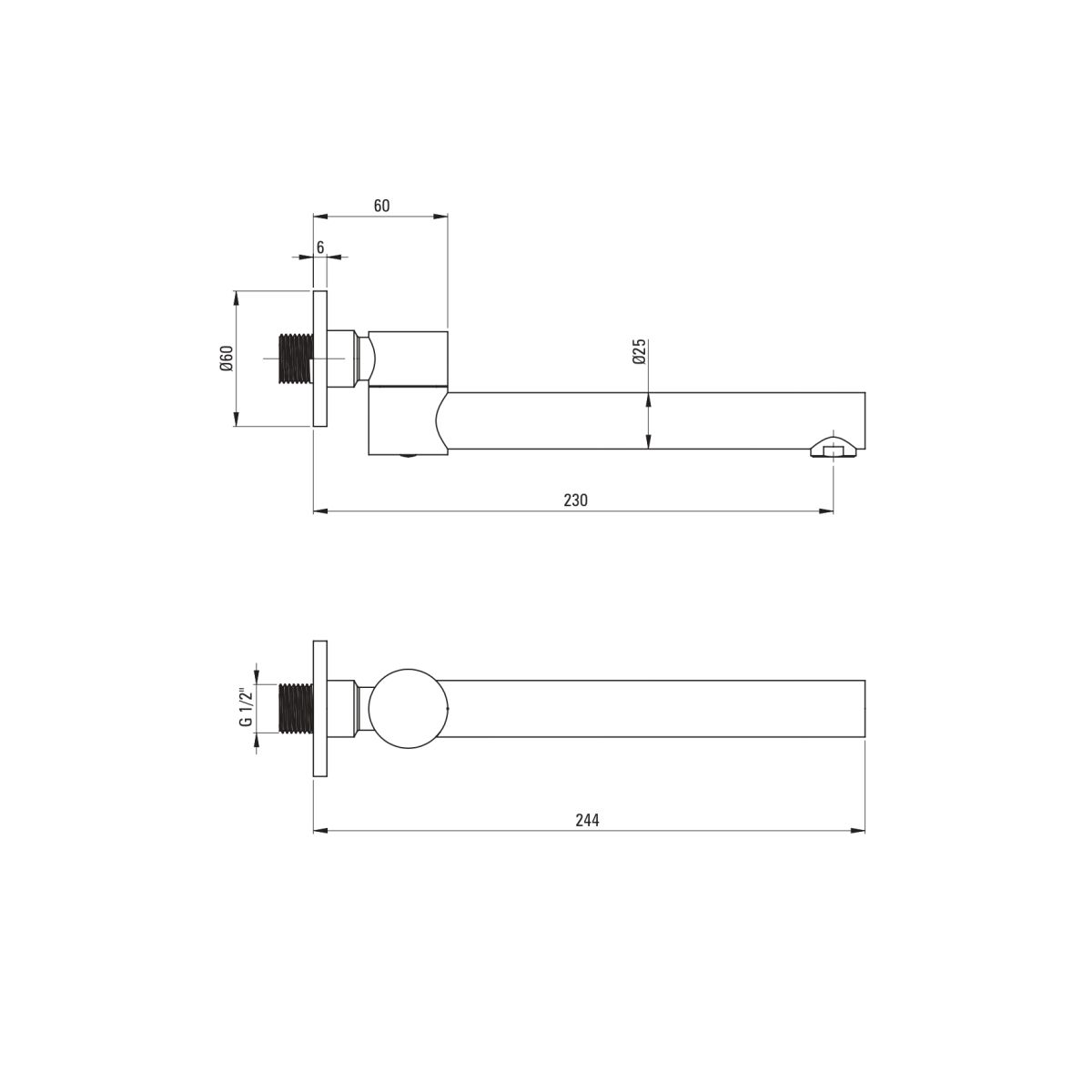 - Reichweite des Dusch-/Wannenauslaufs [mm]: 230