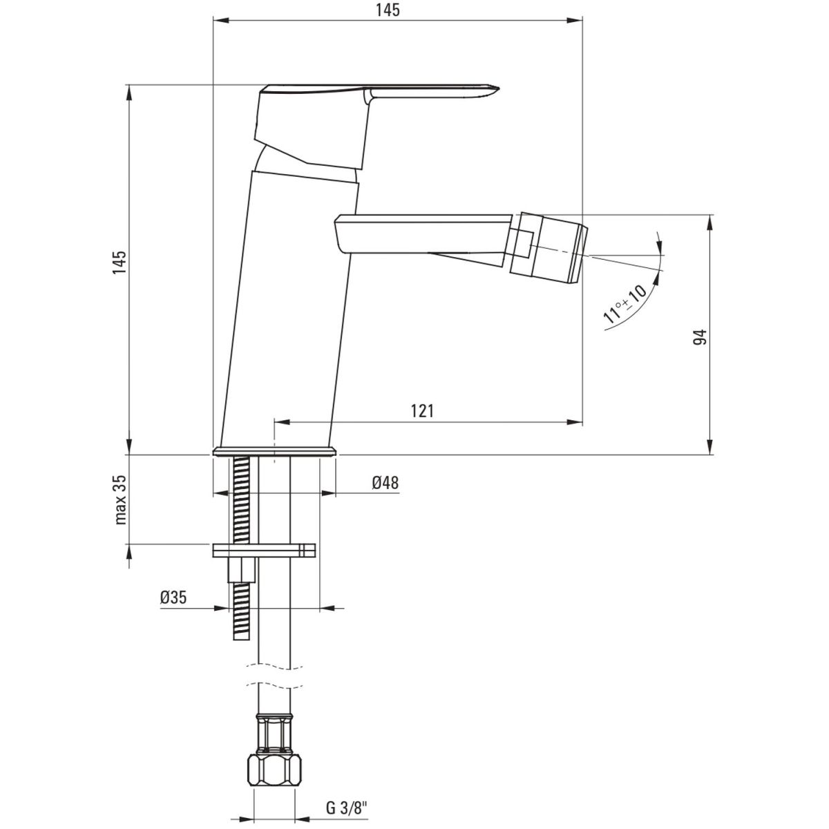 - Gewinde von der Installation: 3/8''