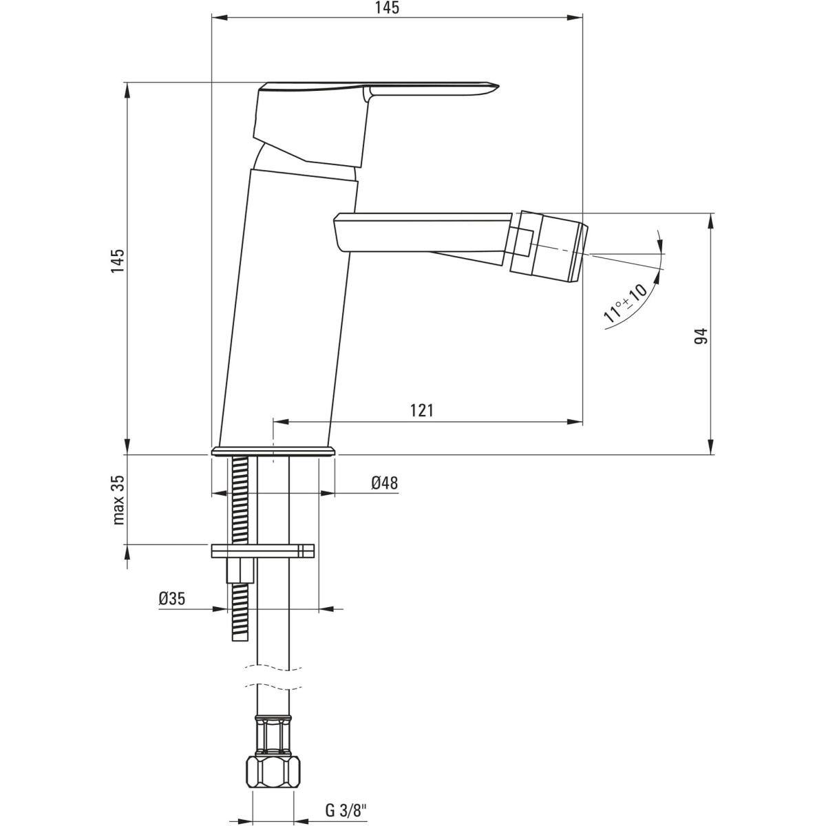- Gewinde von der Installation: 3/8"