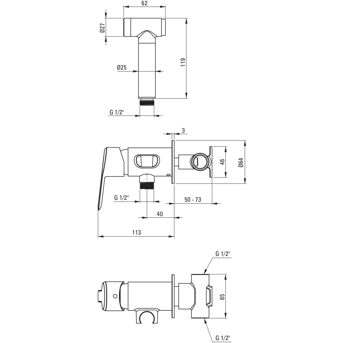 Deante Arnika Bidetarmatur mit Duschset Unterputz || BQAD34M