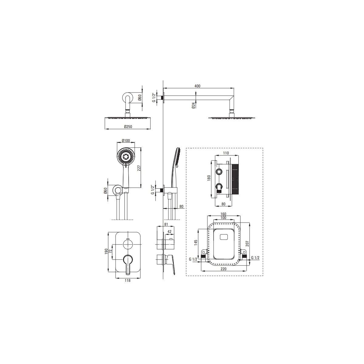 Das Unterputz-Set Titanium besteht aus einem Mischerkasten, einer Duschbrause und einer Handbrause mit Winkelanschluss und Schlauch. Der Duschkopf und die Handbrause sind mit einem Anti-Kalk-System ausgestattet, das Kalkablagerungen verhindert. Darüber hinaus verfügt die Handbrause über drei Strahlarten: Regenstrahl, Mischstrahl und Hydromassage. Das gesamte Set ist in einem eleganten Titanium-Farbton gehalten, der sowohl zu weißer Keramik als auch zu anthrazitfarbener oder nerofarbener Keramik perfekt passt.