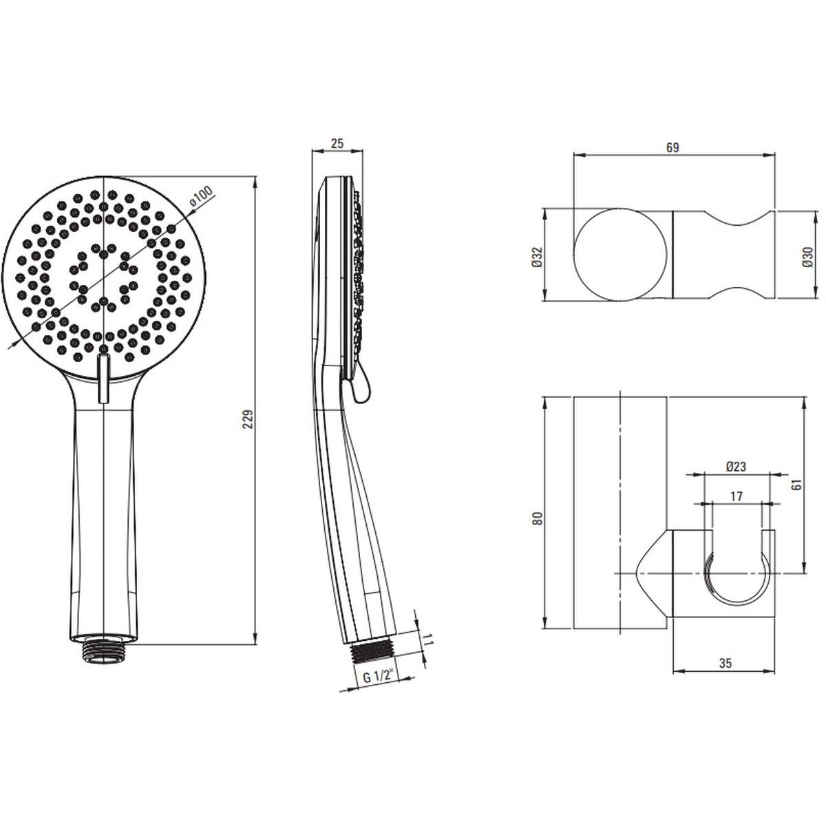 - Inbegriffen: Duschkopf, Duschschlauch, Duschhalter