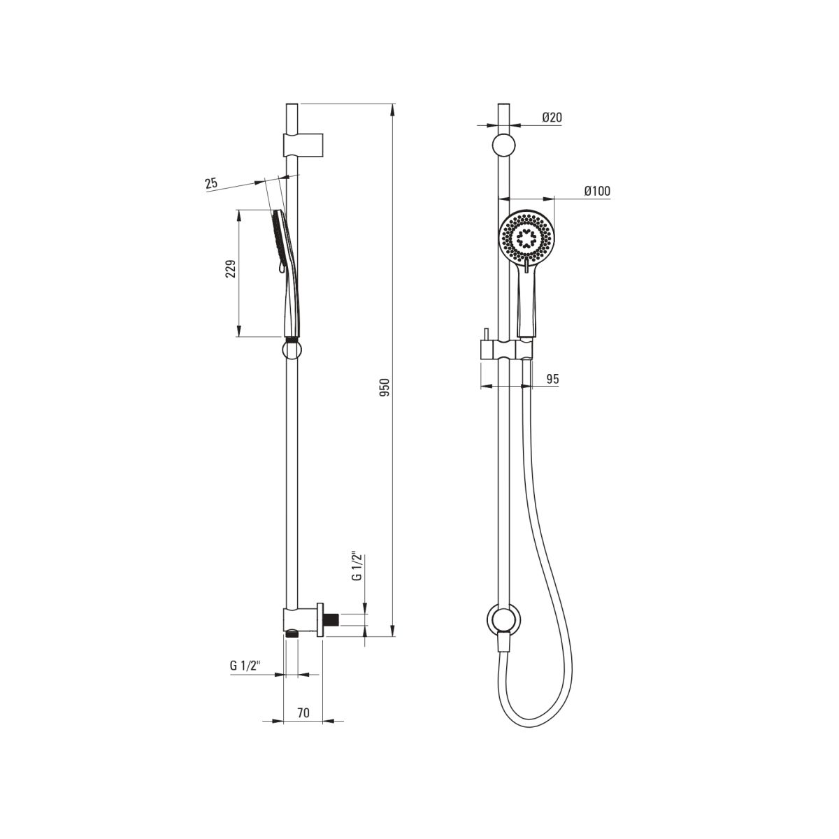 - Inbegriffen: Duschkopf, Duschschlauch, Duschstange