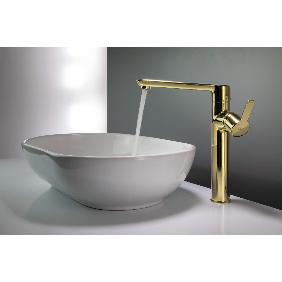 Die Waschtischarmatur mit erhöhtem Körper aus der Arnika-Kollektion zeichnet sich durch harmonische Formen und abgerundete Konturen aus. Die extravagante, goldene Oberfläche verleiht ihr einen modernen Charakter. Die Armatur ist mit einem Silikon-Luftsprudler und einem Anti-Kalk-System ausgestattet, das die Reinigung erleichtert. Der Keramikkopf und die siebenjährige Herstellergarantie sorgen für eine lange Lebensdauer des Produkts.