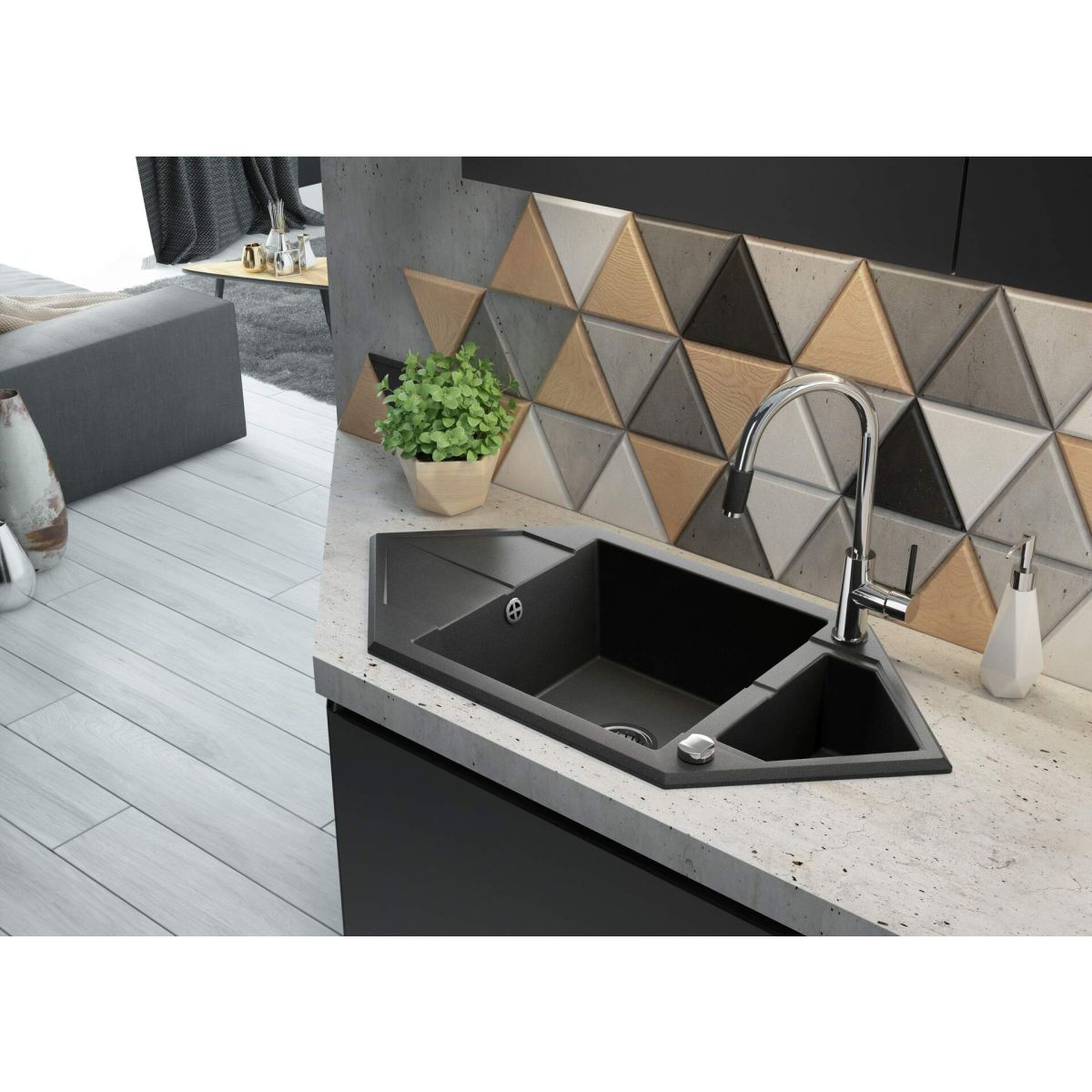 Deante Aster Wasserhahn mit Wasserfilter Stehend chrom-schwarz BCA064M