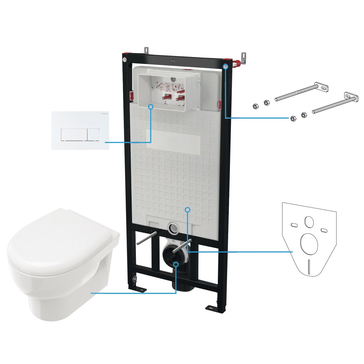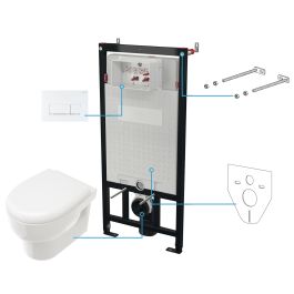 Das WC-Set für die Unterputzmontage besteht aus einer Avis-Toilettenschüssel mit Sitz, einem Unterputzrahmen für Wandtoiletten und einem Slim-Spülknopf. Die Avis-Toilettenschüssel hat keinen Standardflansch, unter dem sich Bakterien und Verunreinigungen ansammeln können. Dank moderner Technologie kann die Schüssel mit weniger Wasser gründlich gespült werden, was den Wasserverbrauch erheblich reduziert. Die Schüssel wird komplett mit einem langsam fallenden Avis-Sitz geliefert. Der Rahmen verfügt über eine leise Doppelspülung – klein (3 l) und groß (6 l). Es kann in einer Leichtbaukonstruktion oder unter einer tragenden Wand montiert werden. Der Spülknopf in Bianco-Ausführung ist aus hochwertigem Kunststoff gefertigt. Durch seine flache Konstruktion schmiegt er sich perfekt an die Wand an und ist leicht zu reinigen.