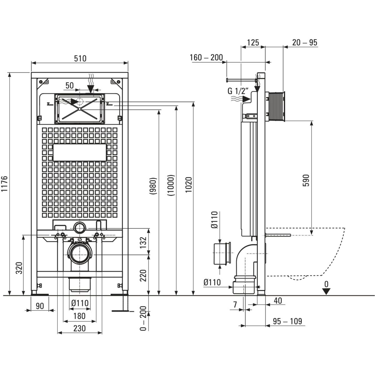 - Höhenverstellung des Rahmens: 20 cm