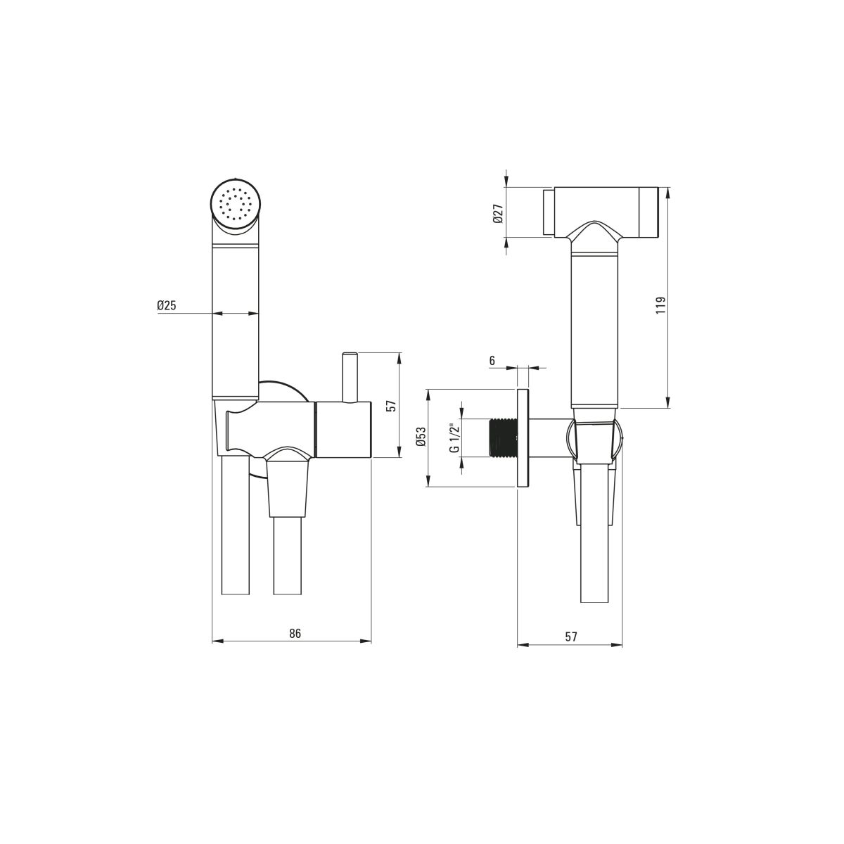 Das Bidetta-Set in Nero-Ausführung ist mit einem besonders empfindlichen CoolOut-Hörer ausgestattet, der sich durch heißes Wasser nicht erwärmt, sowie mit einem praktischen Schlauch mit Anti-Twist-System, der sich während des Gebrauchs nicht verdreht. Die Armatur ist mit einer eleganten, satinierten Beschichtung in tiefem Schwarz versehen. Wir montieren sie in der Nähe der Toilettenschüssel für Personen, die in ihrem Badezimmer keinen Platz für die Installation eines Bidets haben. Darüber hinaus eignet sich diese Armatur auch für andere Haushaltsaufgaben, wie z. B. das Befüllen hoher Gefäße mit Wasser. Ausgestattet mit einem praktischen Start-Stopp-Knopf ist sie sehr komfortabel, dabei diskret und leicht zu reinigen.