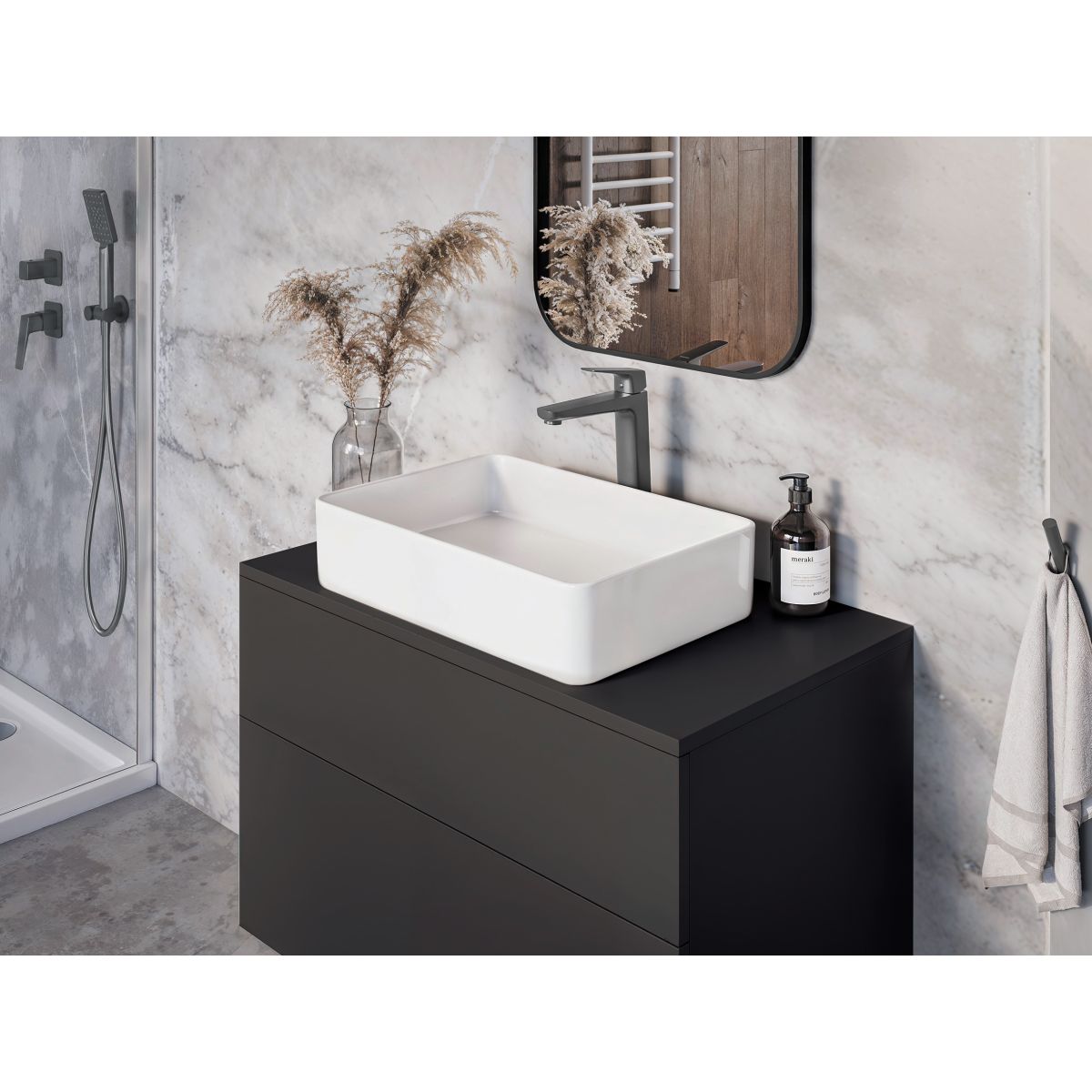Die Waschtischarmatur Blur wurde aus hochwertigem Messing gefertigt, was ihre Langlebigkeit und Korrosionsbeständigkeit gewährleistet. Sie ist mit einem Strahlregler ausgestattet, der den Wasserfluss verbessert und den Wasserverbrauch reduziert. Im Lieferumfang sind Anschlussschläuche und eine Montagehülse enthalten, die die Installation der Armatur erheblich erleichtern und beschleunigen.