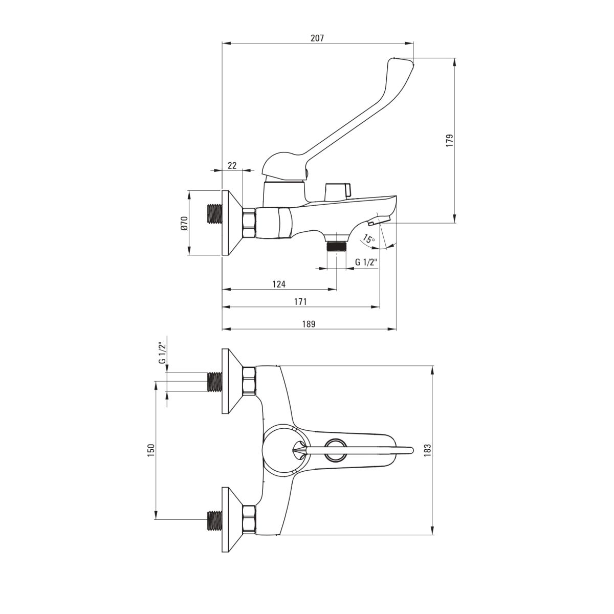 - Verlängerter Hebel vom Typ Clinic für eine einfache Bedienung