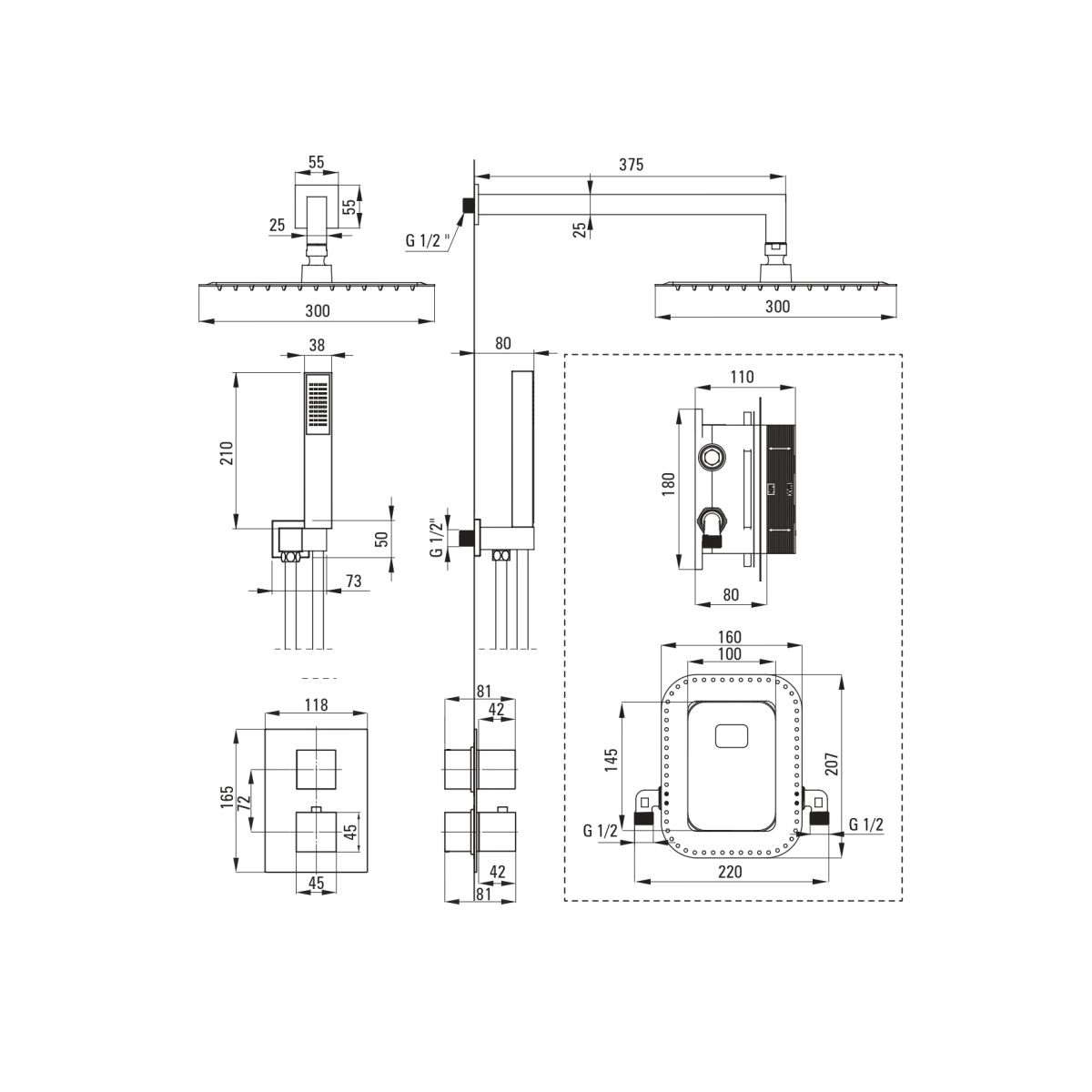 - Armaturentyp: Unterputz-BOX, thermostatisch