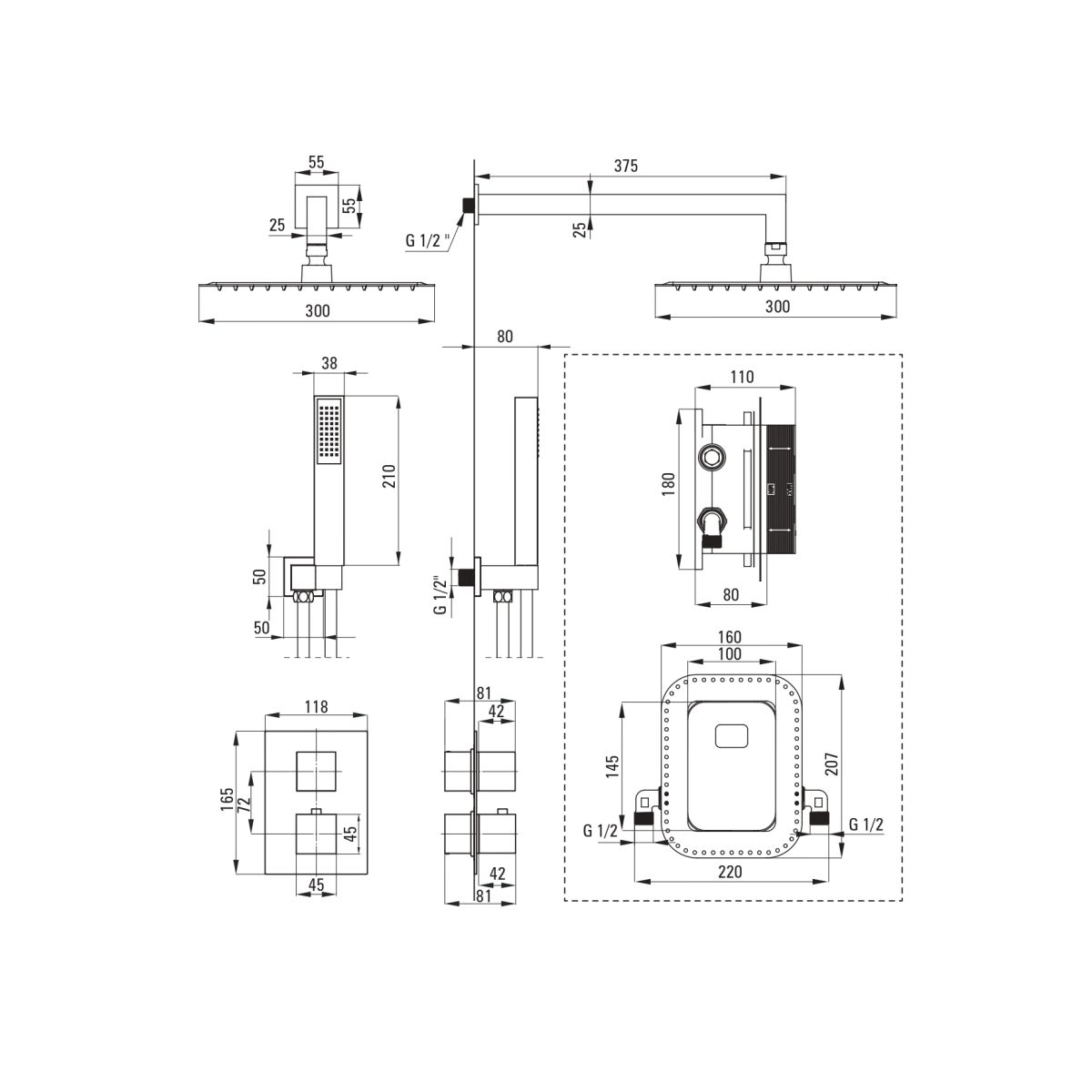 - Armaturentyp: Unterputz-BOX, thermostatisch