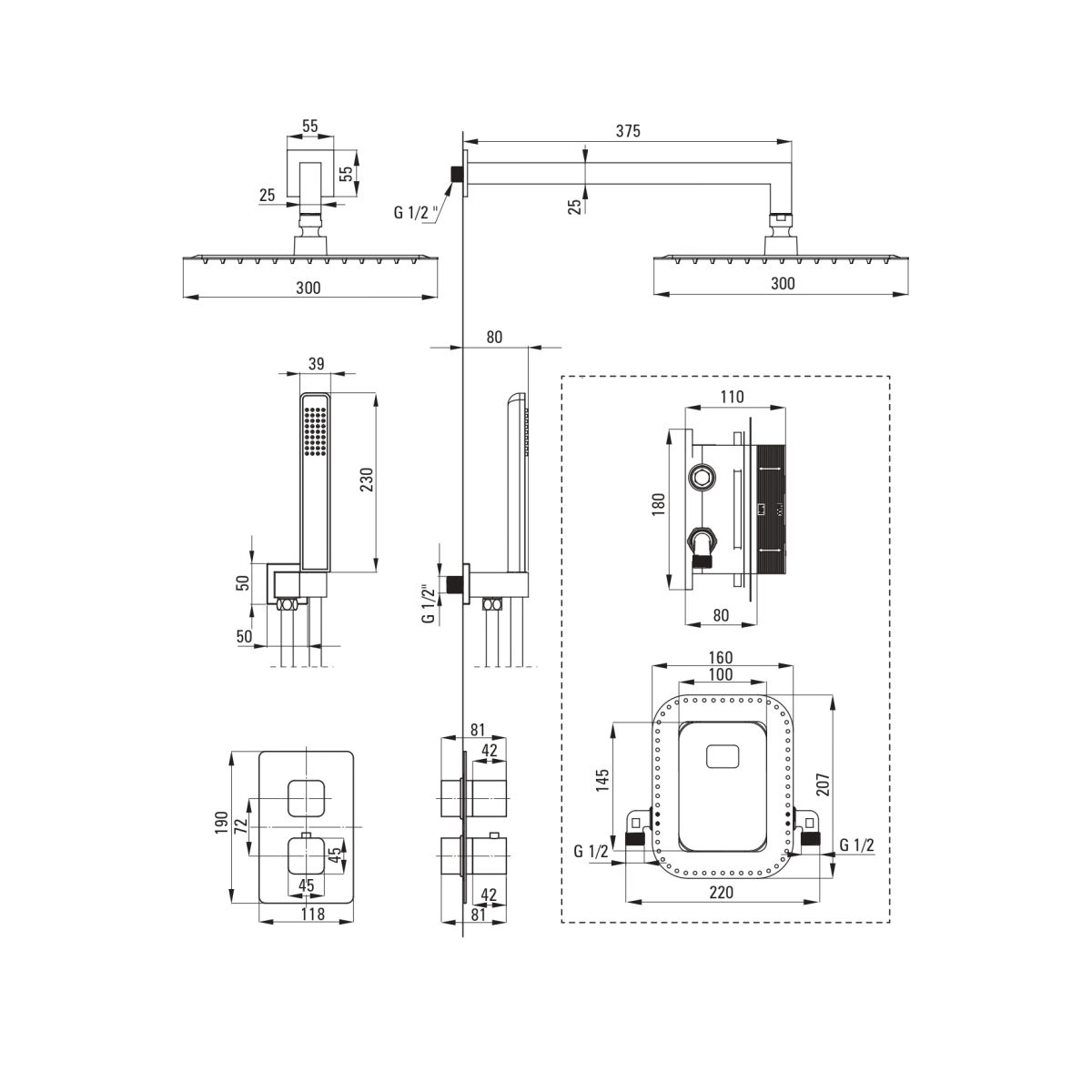- Armaturentyp: Unterputz-BOX, thermostatisch