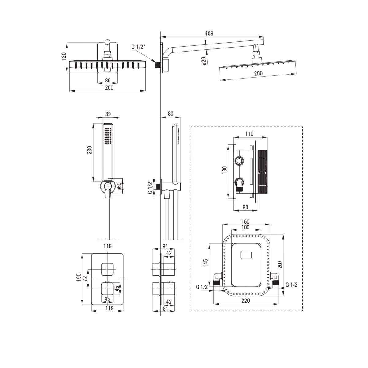 - Inbegriffen: Batterie mit Schalter, Duschkopf, Duschkopf, Duschschlauch, Duscharm, Eckanschluss