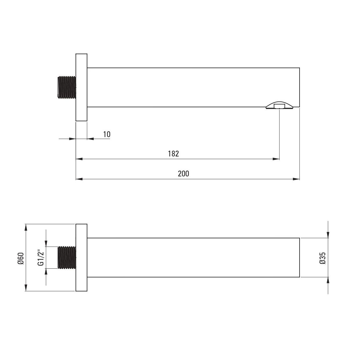 - Auslaufweite: Dusche/Wanne [mm] 182