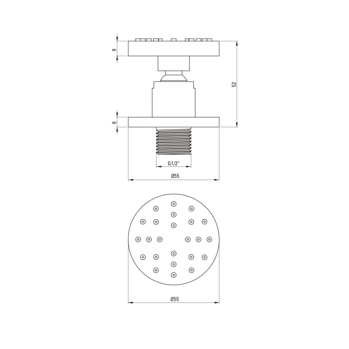 Die runden Cascada-Düsen sind auf Gelenken angebracht, sodass Benutzer sie an ihre Körpergröße anpassen können. Sie bestehen aus strapazierfähigem und widerstandsfähigem Messing und sind mit einem Anti-Kalk-System ausgestattet, das Kalkablagerungen verhindert.