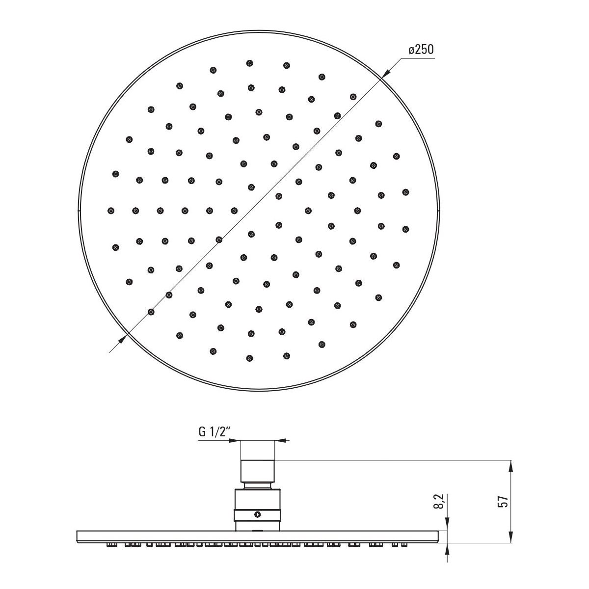 Der Duschkopf ist aus hochwertigem Messing gefertigt und mit gebürstetem Stahl veredelt. Der Duschkopf ist mit einem Anti-Kalk-System ausgestattet, das die Reinigung des Produkts erleichtert. Es reicht aus, mit dem Finger über die Silikonnoppen zu streichen, um Kalkablagerungen zu entfernen. Der Duschkopf passt perfekt zu Armaturen mit gebürsteter Stahloberfläche.