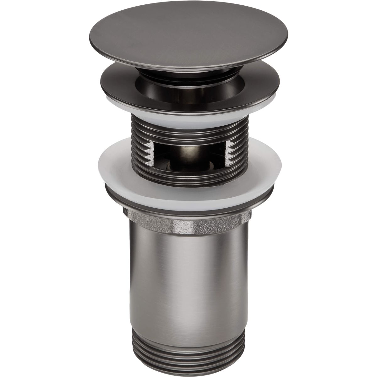 Der runde Click-Clack-Stopfen ist für Bidets und Waschbecken bestimmt. Es handelt sich um ein universelles Produkt, das sowohl für Waschbecken mit als auch ohne Überlauf geeignet ist. Das Öffnen und Schließen des Abflusses erfolgt durch Drücken des Stopfens mit dem Finger. Das Produkt verfügt über eine originale Titan-Oberfläche, die perfekt zu Armaturen in derselben Farbe passt.