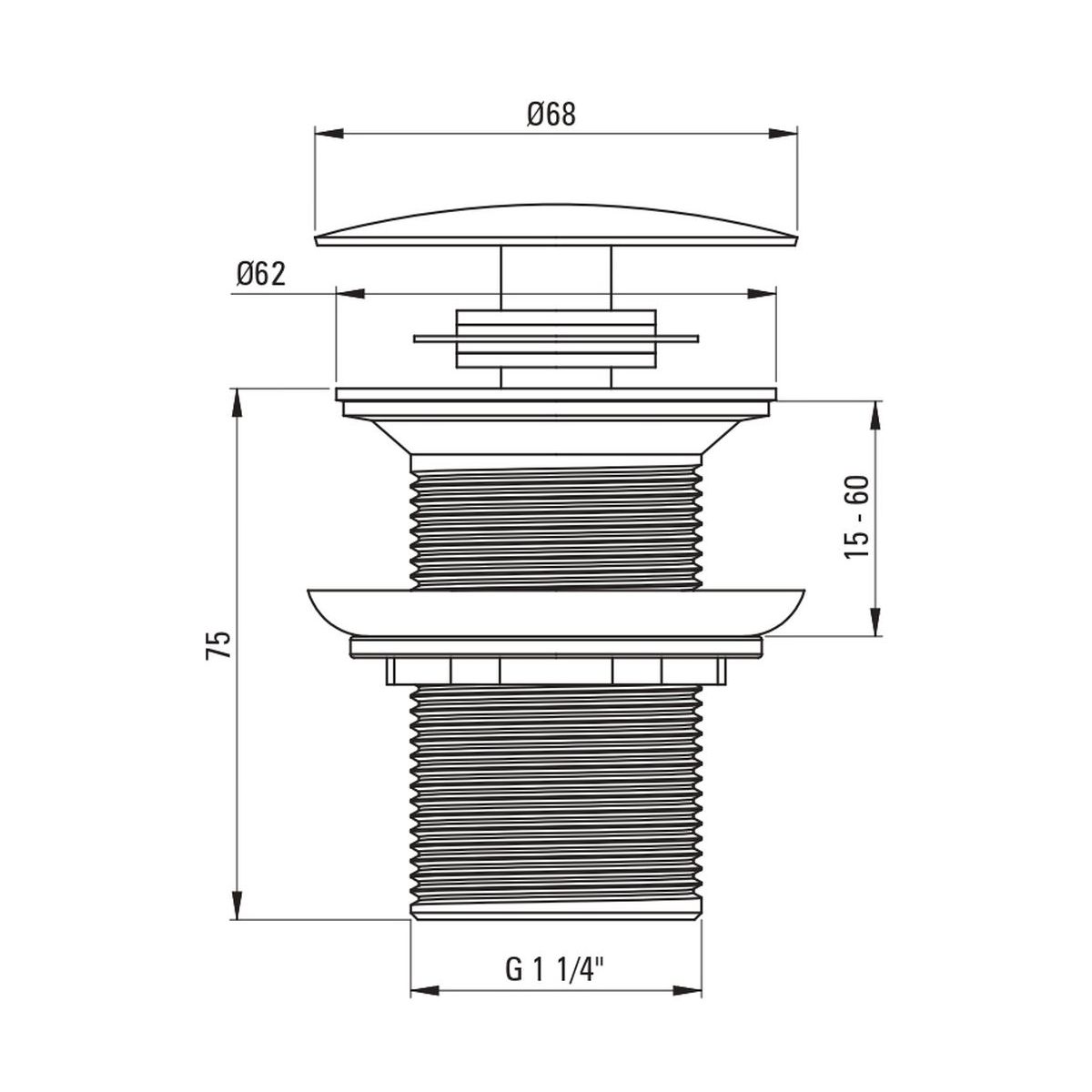 Der runde Click-Clack-Stöpsel ist für Waschbecken ohne Überlauf vorgesehen. Das Produkt wurde aus hochwertigem Messing gefertigt. Das Öffnen und Schließen des Abflusses erfolgt durch Drücken des Stöpsels mit dem Finger. Der Stöpsel ist in elegantem, mattem Schwarz gehalten.