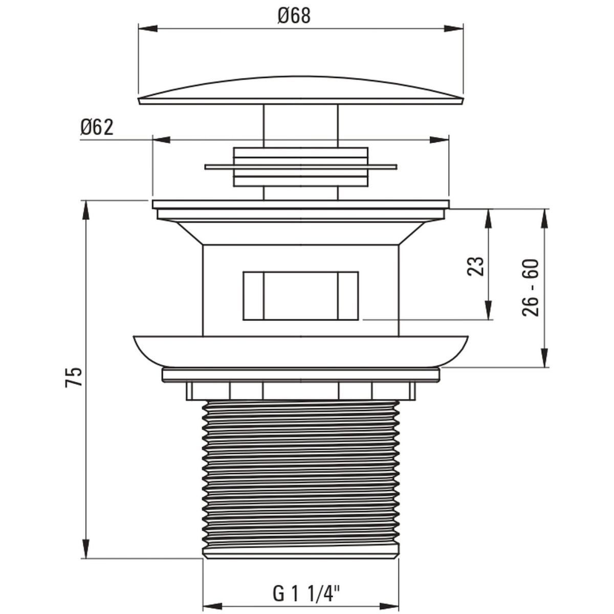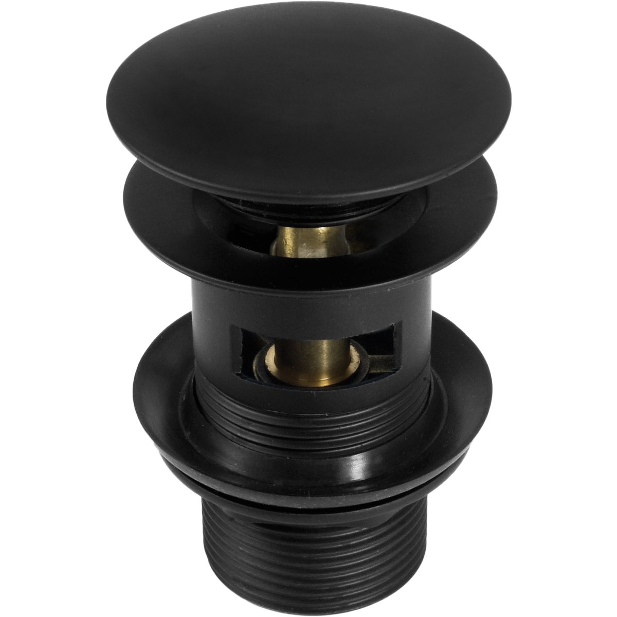 Der runde Click-Clack-Stopfen ist für Bidets und Waschbecken mit Überlauf vorgesehen. Das Produkt wurde aus hochwertigem Messing gefertigt. Das Öffnen und Schließen des Abflusses erfolgt durch Drücken des Stopfens mit dem Finger. Das Produkt ist in elegantem, mattem Schwarz gehalten.