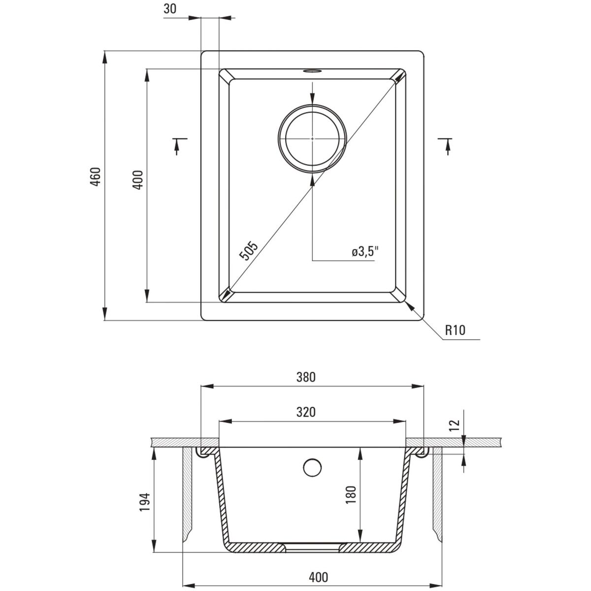 - Abflussdurchmesser: 3,5''
