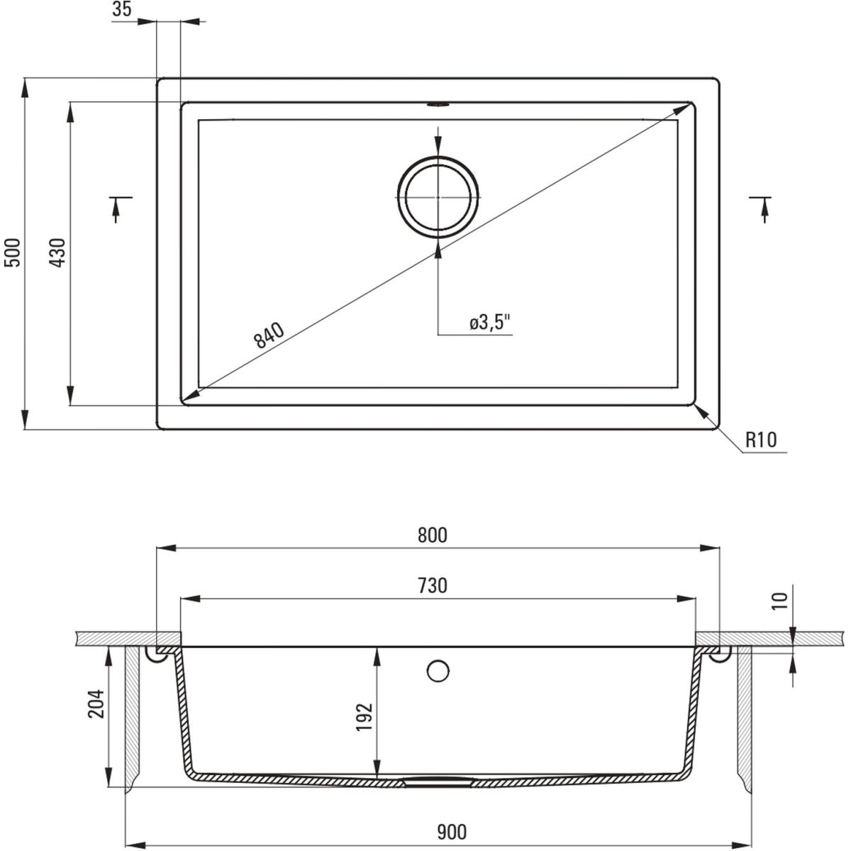 - Abflussdurchmesser: 3,5''