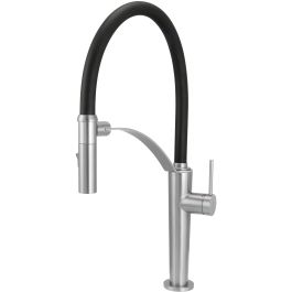 Die Küchenarmatur Corda ist eine praktische und elegante Wahl. Der flexible Auslauf erleichtert das Spülen von Geschirr und die Reinigung rund um die Spüle. Dank des magnetischen Halters bleibt der Auslauf immer an seinem Platz. Mit der Doppelfunktionsbrause kann der Strahl von belüftet auf Regen umgestellt werden, was den Komfort und die Funktionalität der Armatur erhöht. Die Oberfläche in gebürstetem Stahl ist fingerabdruckresistent und leicht zu reinigen, wodurch die Armatur modern und ästhetisch wirkt. Ihr Design passt perfekt zur Serie der Granitspülen Corda.