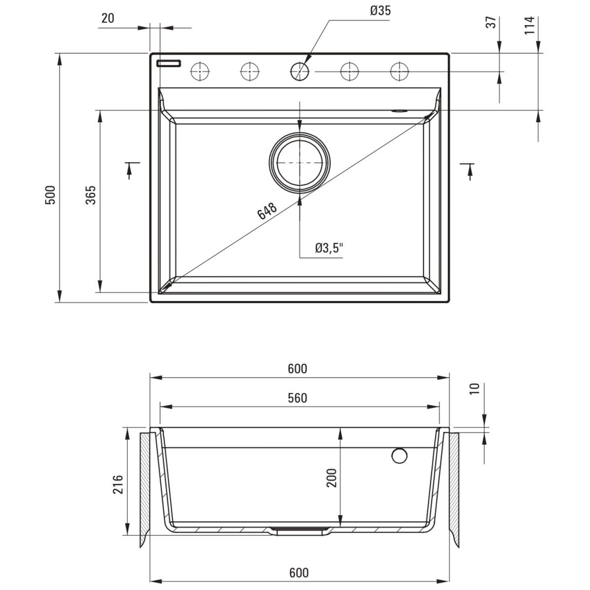 - Montageart: Einbau, bündig mit der Arbeitsplatte