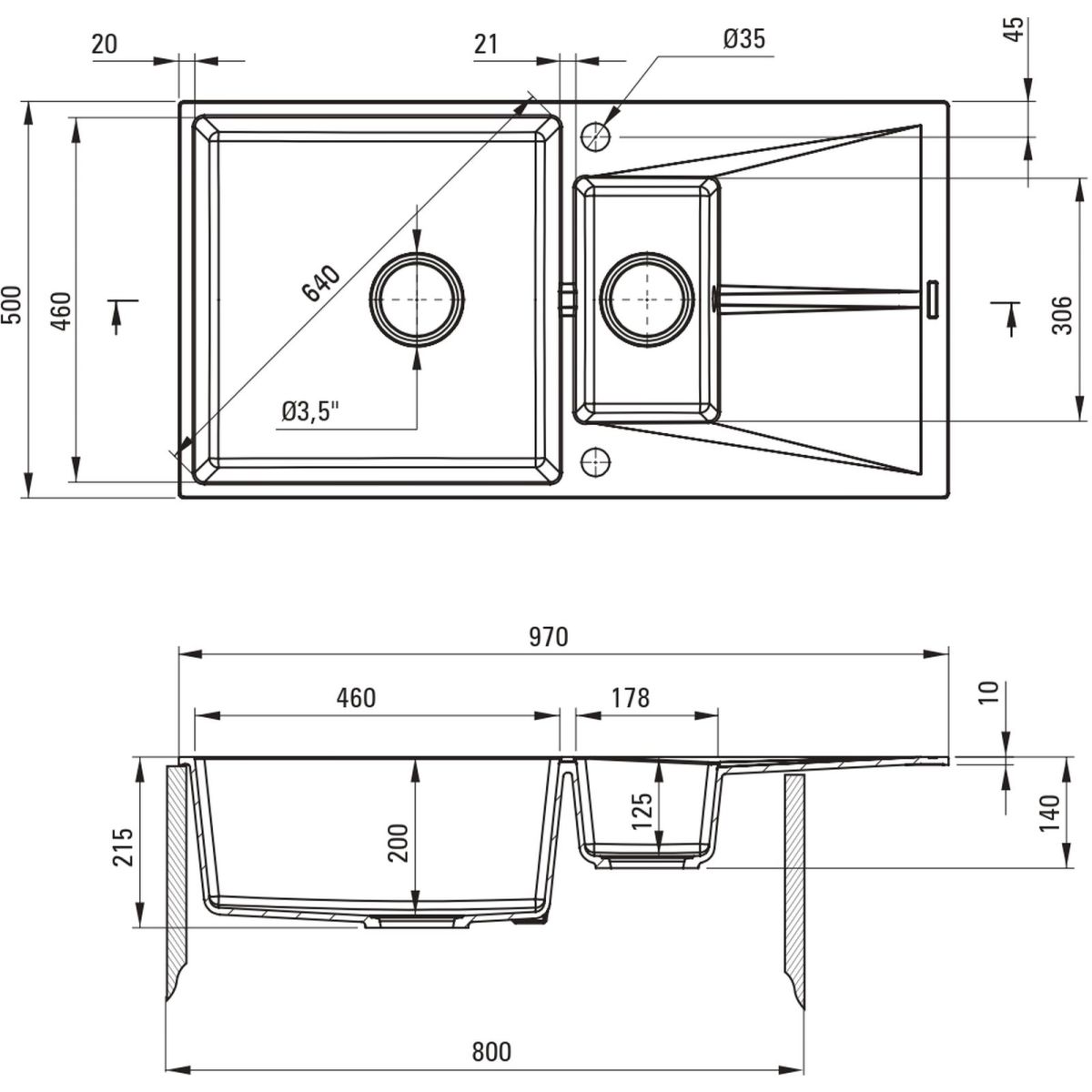 - Abflussdurchmesser: 3,5''