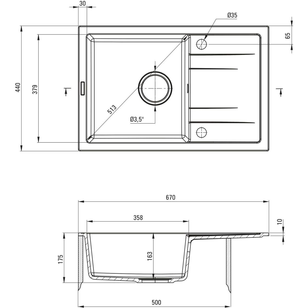 - Ablaufdurchmesser: 3,5''