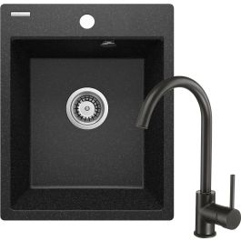 Die Spüle mit Wasserhahn in mattem Schwarz ist die perfekte Wahl für alle, die eine Kombination aus modernem Design und außergewöhnlicher Langlebigkeit suchen. Die Armatur ist mit einem Belüfter ausgestattet, der den Wasserstrahl mit Luft anreichert. Die Spüle ist aus Granit gefertigt, einem Material, das für seine außergewöhnliche Widerstandsfähigkeit gegenüber den täglichen Herausforderungen bekannt ist – von Stößen über Temperaturschocks bis hin zu Verfärbungen. Dank der Konformität mit der Norm PN-EN 13310 wird die Spüle viele Jahre lang ohne Qualitäts- und Ästhetikverlust dienen. Im Lieferumfang ist ein Space-Saver-Siphon enthalten. Seine kompakte Konstruktion ermöglicht eine effektive Nutzung des Raums unter der Spüle und bietet zusätzlichen Platz für die Aufbewahrung von Reinigungsmitteln oder anderen Küchenaccessoires.