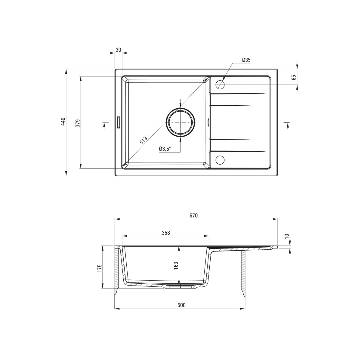 Die Corio-Spüle ist aus strapazierfähigem Granit gefertigt, der stoßfest, verfärbungsbeständig und hitzebeständig ist. Es handelt sich um ein reversibles Modell, das in die Arbeitsplatte eingelassen wird. Die Spüle wird komplett mit einer Stahlarmatur geliefert. Die Armatur verfügt über einen äußerst praktischen, flexiblen Auslauf, der das Befüllen großer Töpfe und Eimer mit Wasser erleichtert. Darüber hinaus ist die Armatur mit einem Belüfter ausgestattet, der den Wasserstrahl mit Luft anreichert, was zu einer erheblichen Wassereinsparung führt.