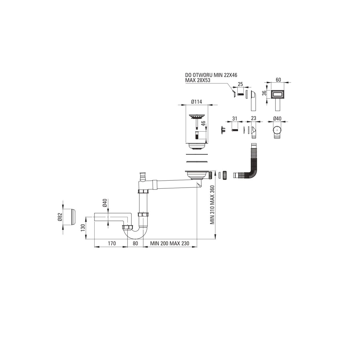 - Platzsparender Siphon, der unter anderem die Mülltrennung erleichtert