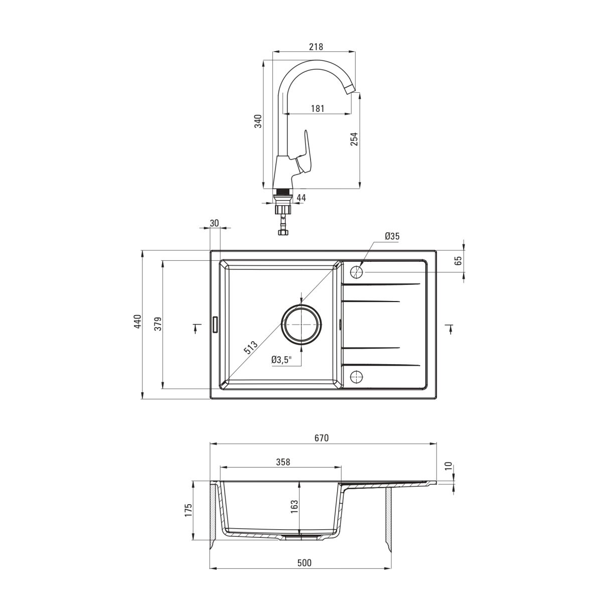 - Anzahl der Spülbecken: 1