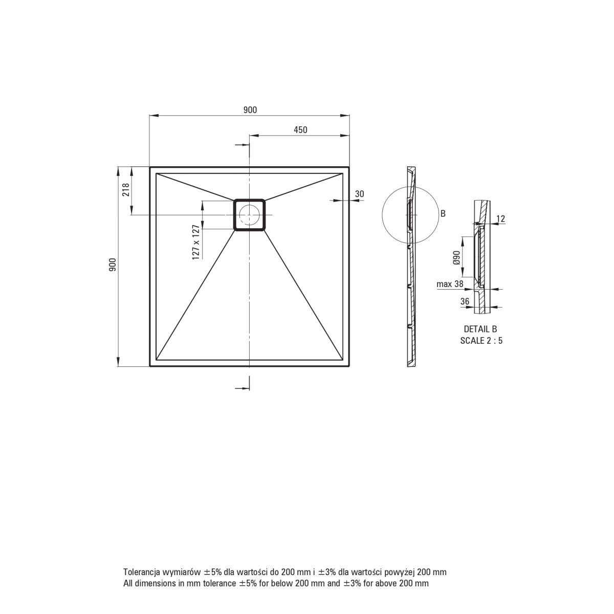 Die quadratische Duschwanne CORREO mit den Maßen 90 x 90 cm ist ein stilvolles und funktionales Element für Ihr Badezimmer. Sie besteht aus strapazierfähigem Granitkonglomerat, ist kratzfest und leicht zu reinigen. Die beige Farbe verleiht dem Raum eine gemütliche Atmosphäre, und die rutschfeste Oberfläche sorgt für Sicherheit im täglichen Gebrauch. Dank seiner kompakten Abmessungen ist er ideal für kleinere Räume.