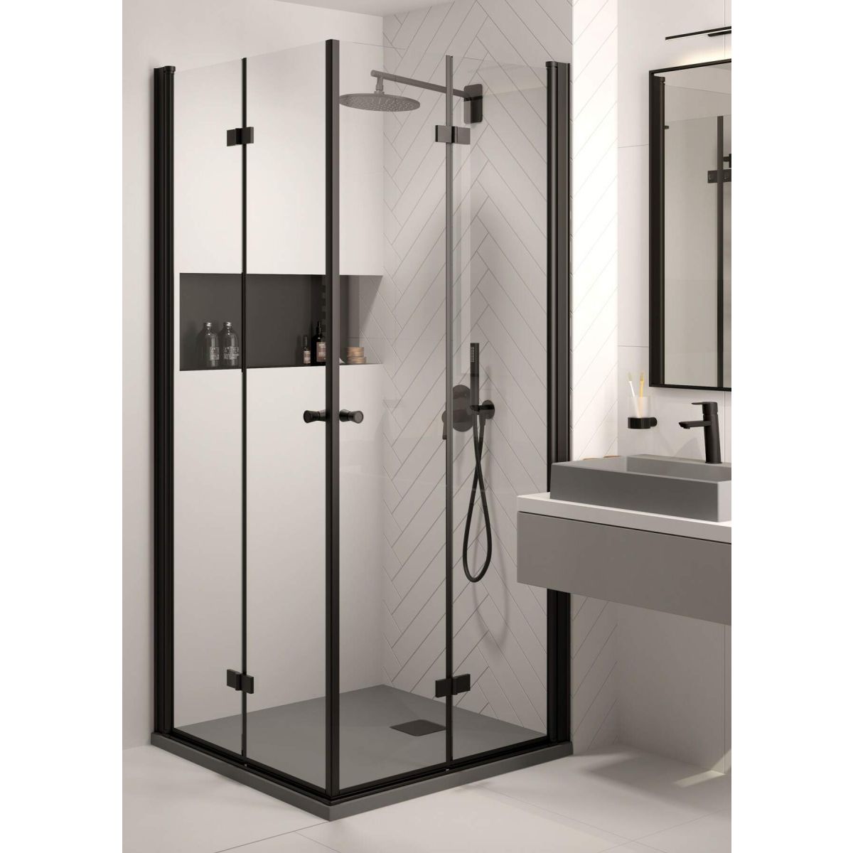Die quadratische Duschwanne Correo besteht aus einem äußerst strapazierfähigen Granitverbundwerkstoff. Sie kann auf drei Arten montiert werden: bodengleich, direkt auf dem Estrich oder auf einer Unterkonstruktion aus Baumaterial. Sie ist in einem grauen Metallic-Farbton gehalten und mit Silberionen angereichert, die antiseptische Eigenschaften haben.