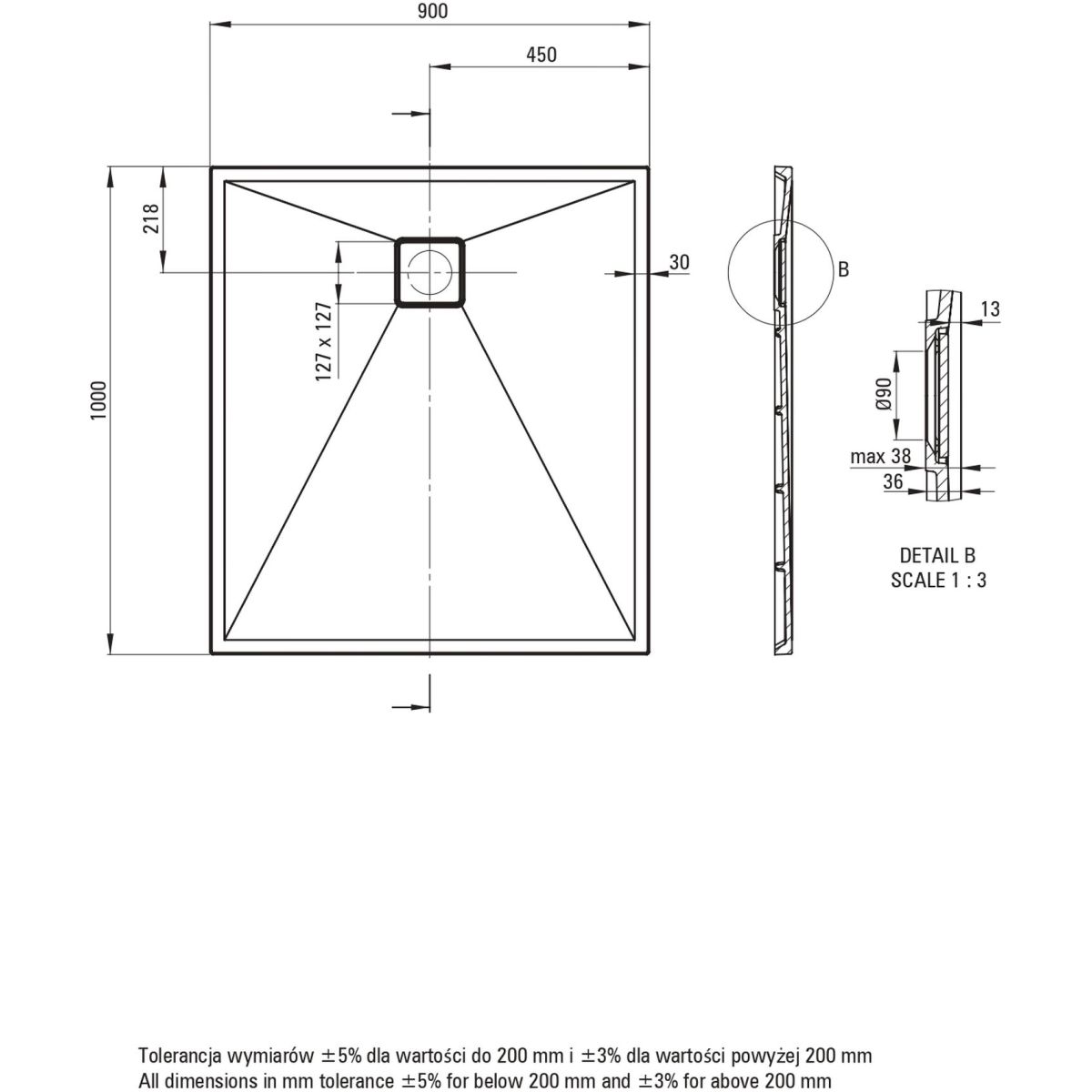 - Abflussdurchmesser: 90 mm