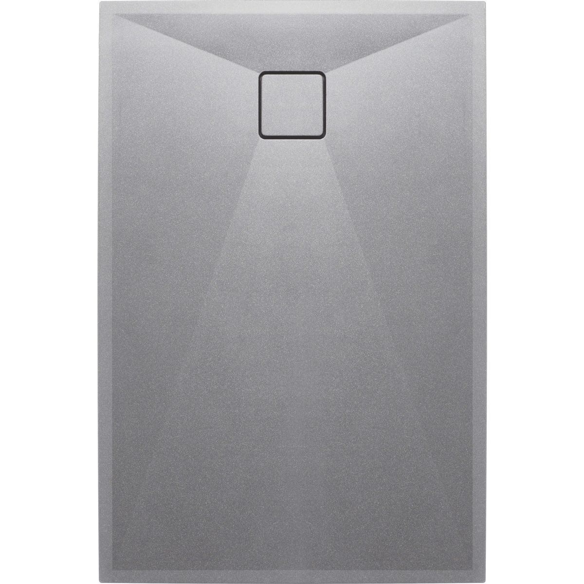 Die rechteckige Duschwanne Correo aus strapazierfähigem Granitkomposit ist stoßfest und verfärbungsbeständig. Sie kann auf drei Arten montiert werden: auf Bodenhöhe, direkt auf dem Estrich oder auf einer Unterkonstruktion aus Baumaterial. Er ist in grauem Metallic-Farbton gehalten und mit Silberionen angereichert, die antiseptische Eigenschaften haben.