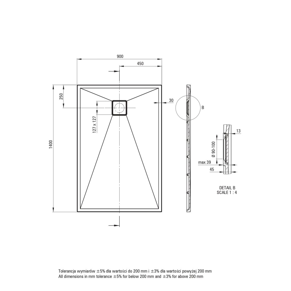 Deante Correo Rechteckige Duschwanne 140x90 cm schwarz KQR_N47B