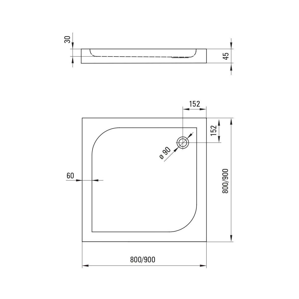 - Durchmesser des Abflusses: 90 mm
