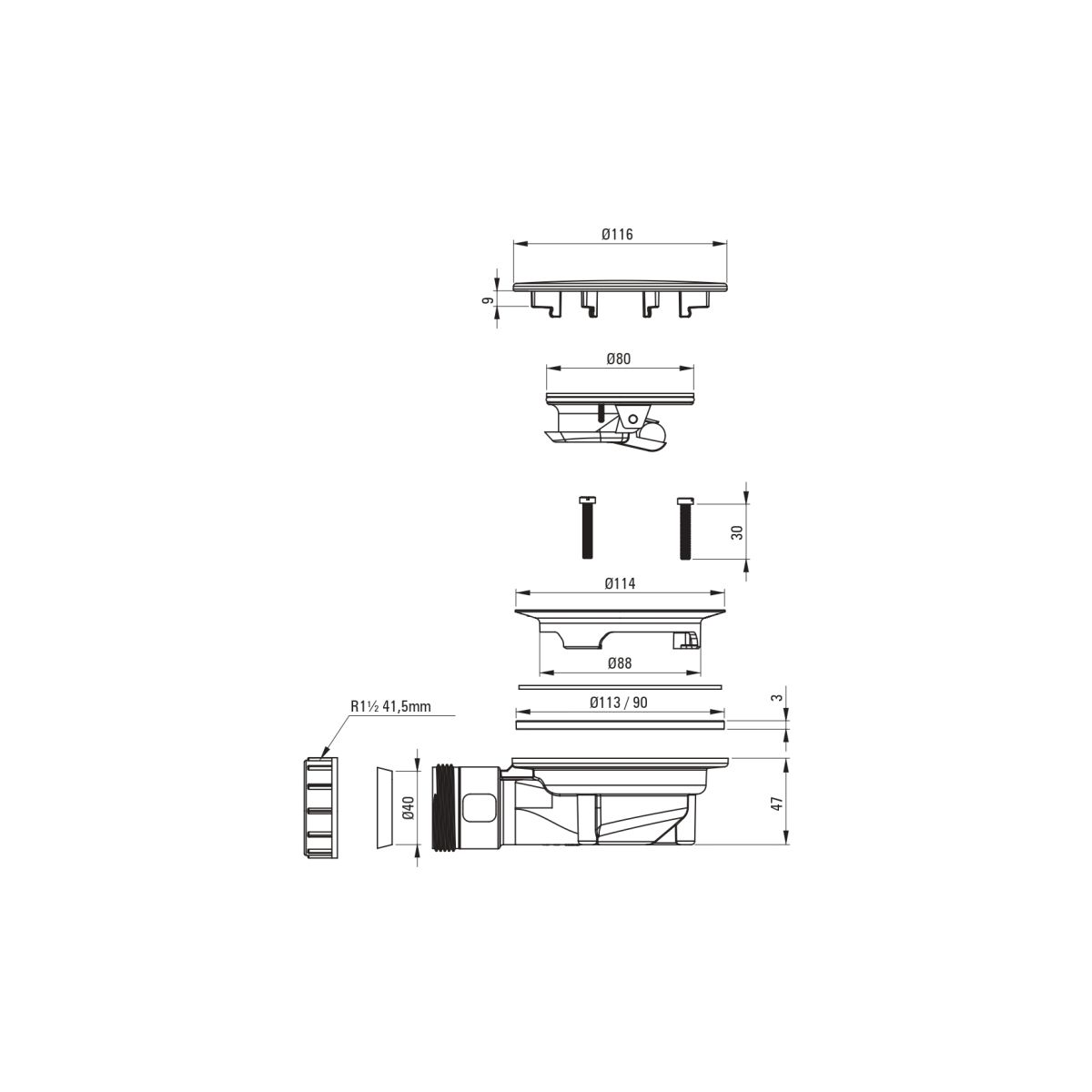 - Ablaufdurchmesser: 90 mm