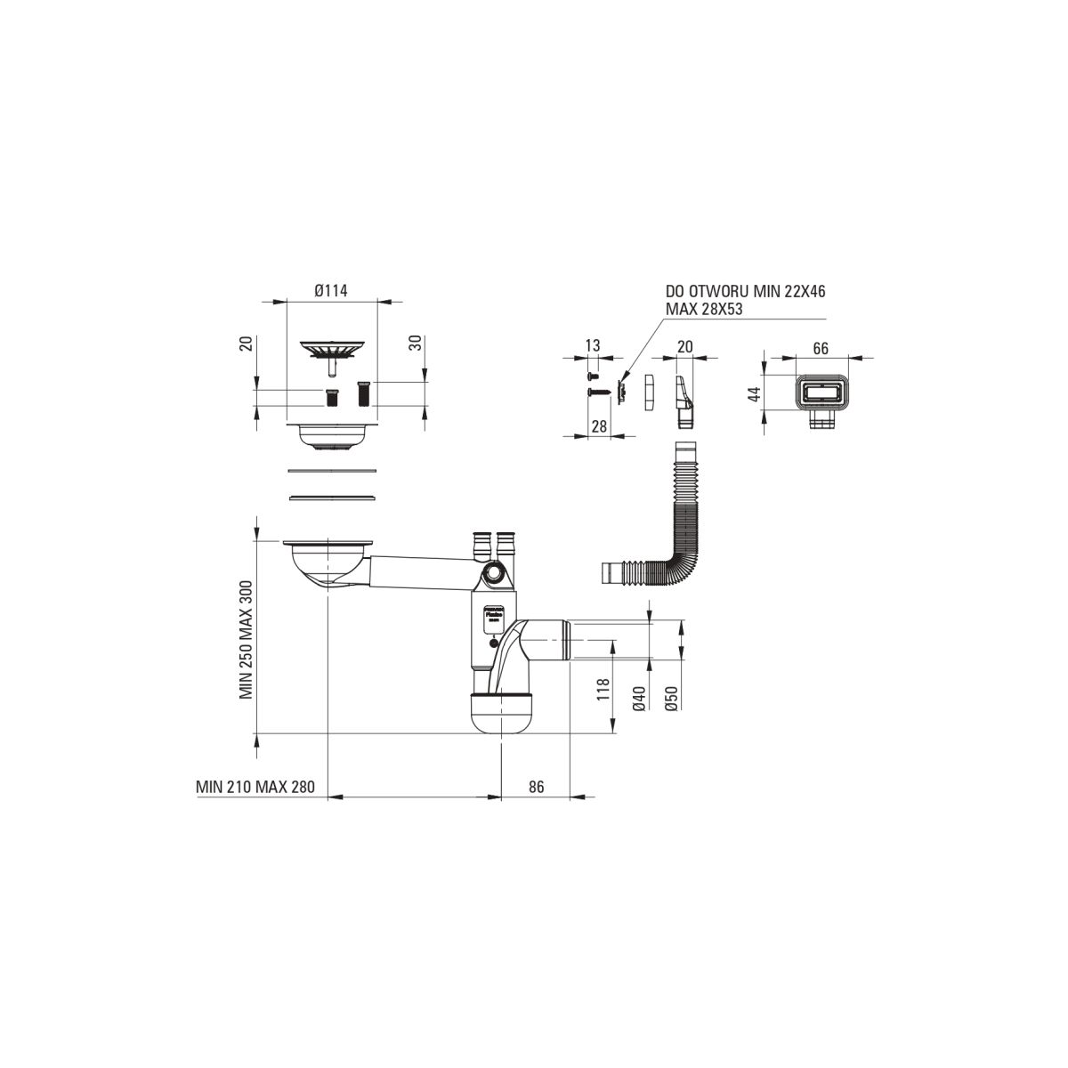 - Platzsparender Siphon Space-Saver, der u. a. die Mülltrennung erleichtert
