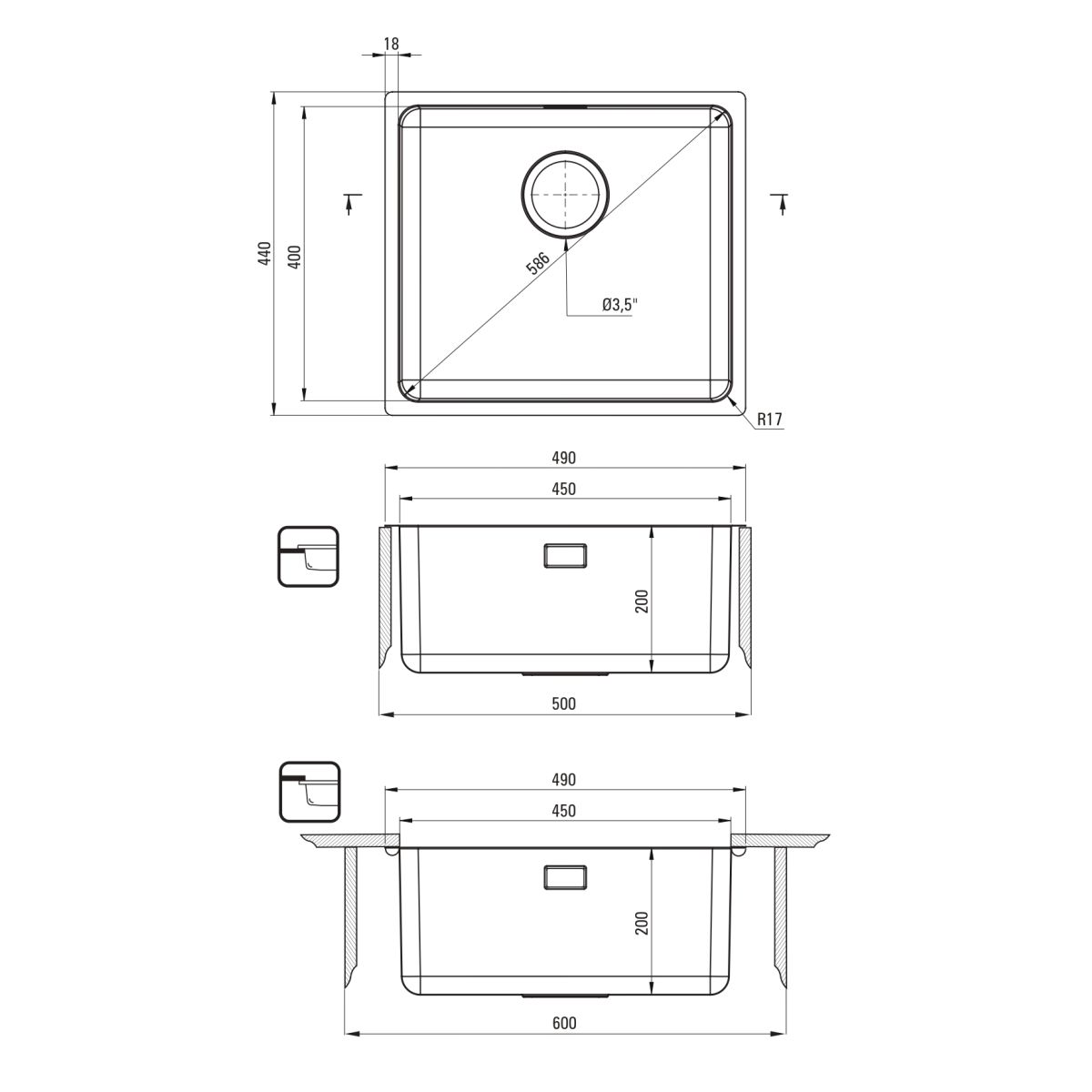 Die Spüle Egeria wurde aus 1 mm starkem Edelstahl mit satinierter Oberfläche gefertigt. Die Kammer hat leicht abgerundete Ecken und sieht äußerst ästhetisch aus. Stahl zeichnet sich durch ein hohes Maß an Hygiene aus, da er antiseptische Eigenschaften hat. Die Spüle ist mit einem Space Saver Lux-Siphon ausgestattet, der dank seiner teleskopischen Konstruktion nur sehr wenig Platz im Schrank einnimmt.