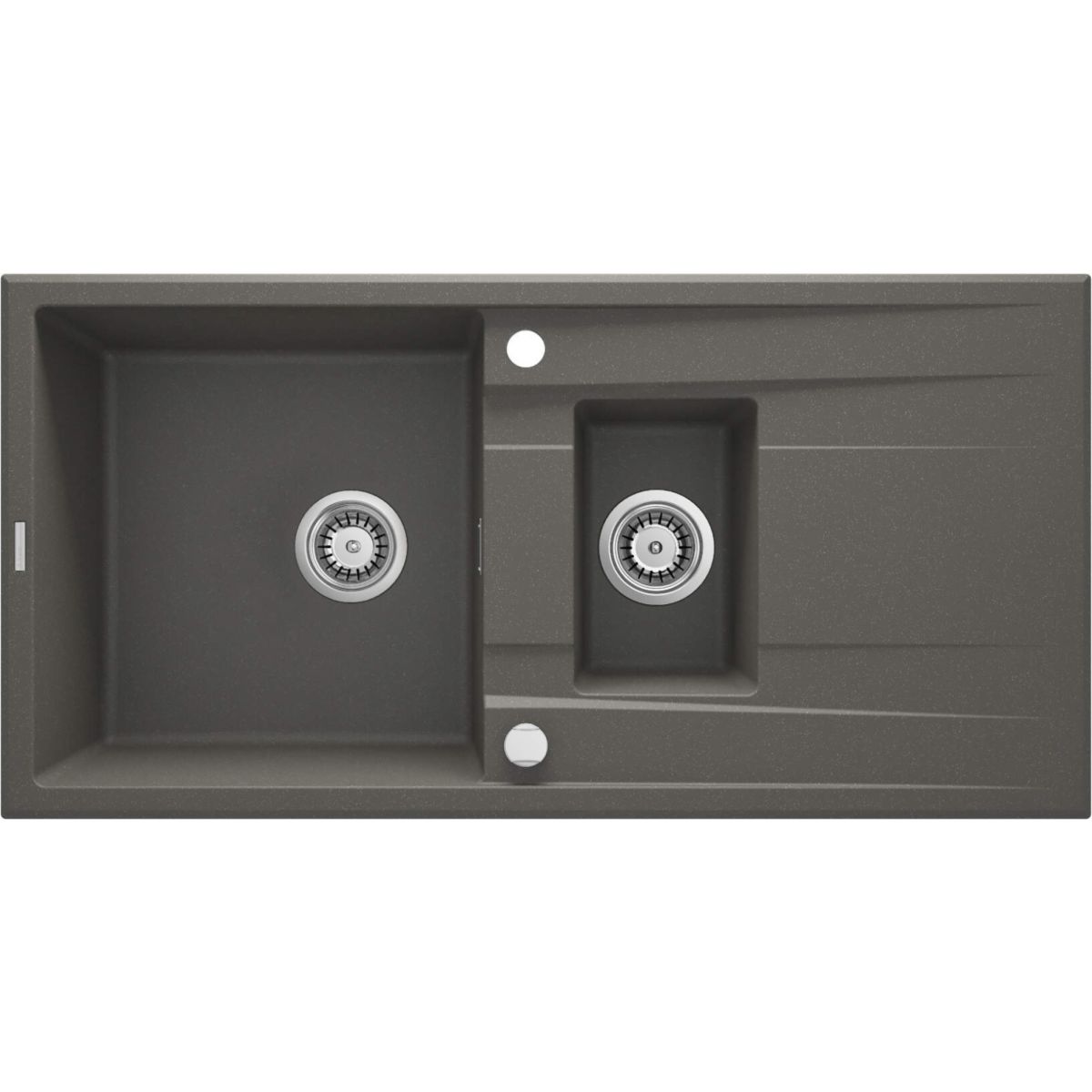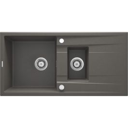 Die 1,5-Kammer-Spüle Eridan aus Granit mit Abtropffläche wird aus hochwertigem Naturmaterial hergestellt. Die Granitoberfläche der Spülen aus dieser Kollektion ist beständig gegen Verfärbungen, Abrieb, Stöße und hohe Temperaturen (bis zu 250 °C). Darüber hinaus weist sie eine flüssigkeitsabweisende Wirkung auf, sodass keine Spuren zurückbleiben. Die Oberfläche der Spüle nimmt gemäß der Norm EN 13310 keine Gerüche auf, ist temperaturwechselbeständig (daher kann ihr heißes Wasser zum Abgießen von Nudeln oder kochendes Wasser aus dem Wasserkocher nichts anhaben) und bleibt dadurch länger sauber und hat antiseptische Eigenschaften. Die Spüle Eridan in einer geräumigen und praktischen Version mit 1 großen 1 kleinen Becken und Abtropffläche in einem schönen Anthrazit ist ideal für Küchen im modernen, minimalistischen, Loft- oder skandinavischen Stil. Das Produkt passt zu 80 cm breiten Küchenschränken und kann mit jeder Seite in die Arbeitsplatte eingelassen werden. Die Spüle verfügt über werkseitige Öffnungen für Wasserhahn, Überlauf und automatische Ablaufabsperrung. Im Lieferumfang enthalten ist auch ein Spacesaver-Siphon mit Anschlussmöglichkeit für eine Spülmaschine, der so konzipiert ist, dass er bis zu 50 % weniger Platz als herkömmliche Siphons benötigt.