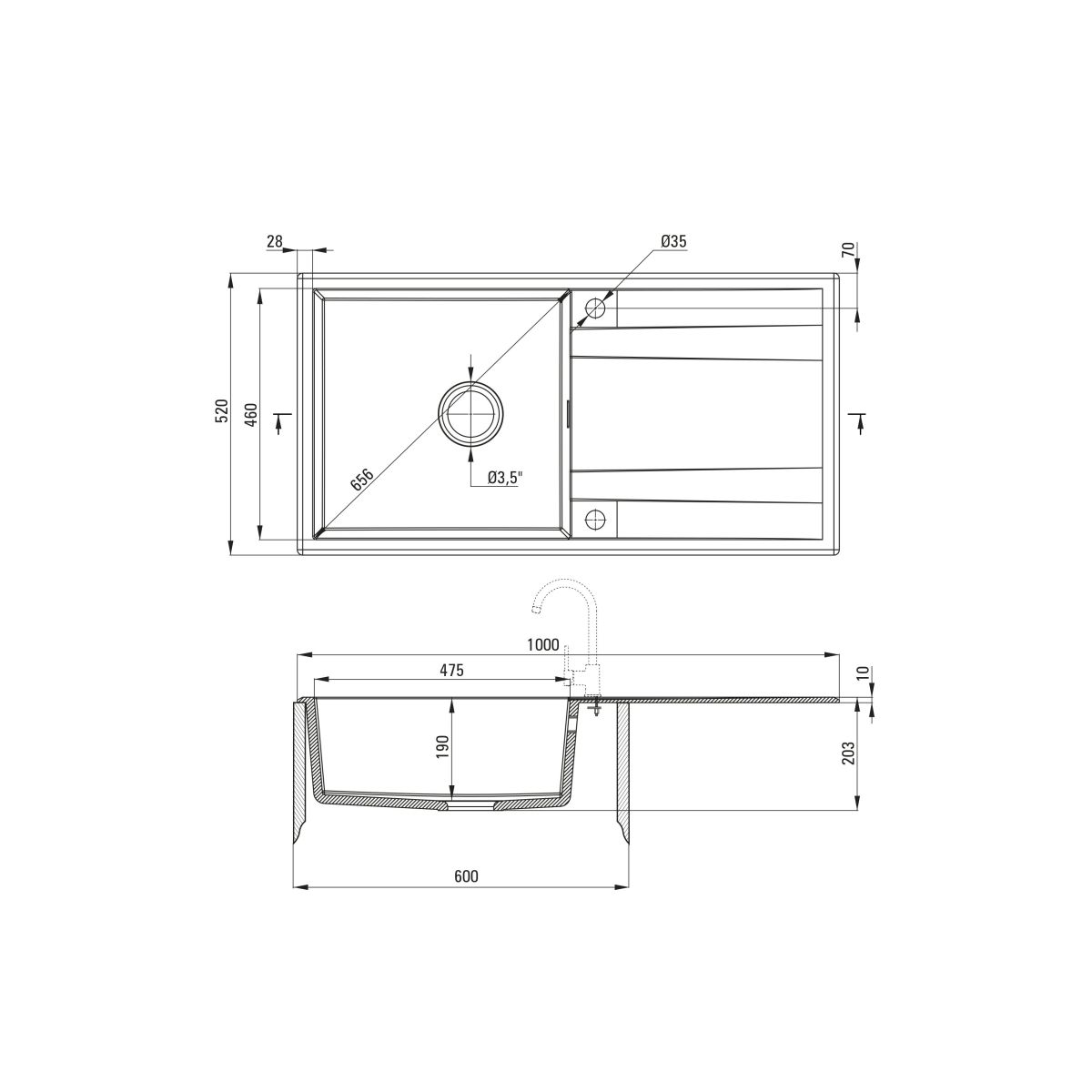 Die Granitspüle ERIDAN vereint Langlebigkeit, eine effektvolle Oberfläche und beeindruckende Abmessungen. Granit ist ein Material mit hervorragenden Eigenschaften. Es ist kratzfest, farbbeständig, hitzebeständig und gleichzeitig leicht zu reinigen. Die große Spülbeckenkammer wird von Liebhabern der Zubereitung von Konserven für den Winter geschätzt. Darin können Sie problemlos große Töpfe und Gläser spülen, sodass in Ihrer Küche immer Ordnung herrscht. Im Set enthalten ist ein Space-Saver-Siphon, der dank seiner Konstruktion bis zu 50 % Platz unter der Spüle spart. Granitspülen sehen in jeder Küche gut aus, sowohl in klassischen als auch in stilvollen. Passend zur Spüle können Sie einen Haken und eine Reling aus dem Deante-Sortiment erwerben.