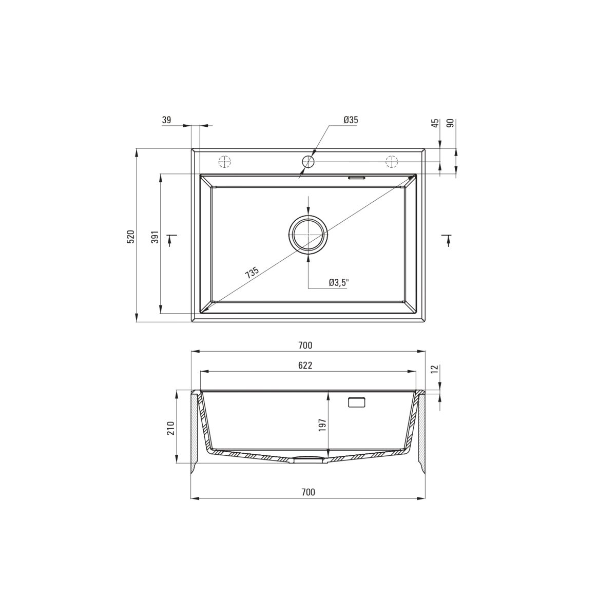 - Abflussdurchmesser: 3,5''