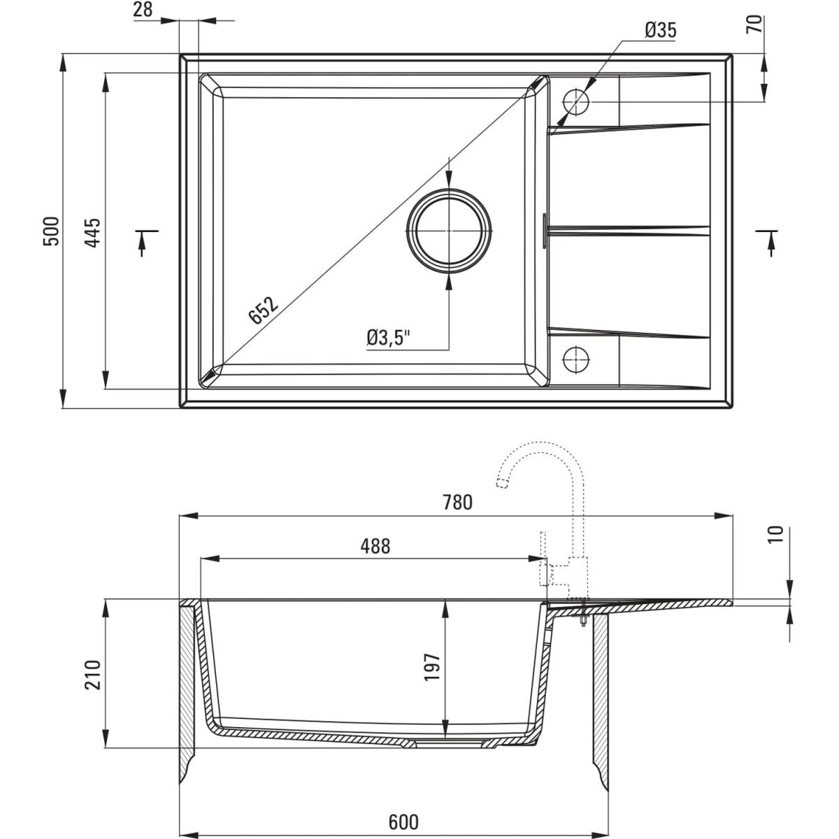 Die 1-Kammer-Spüle Eridan mit einer geräumigen Kammer und einem Abtropffeld ist ein Produkt, das Sie mit seiner Funktionalität, Langlebigkeit und seinem Design begeistern wird. Sie wurde für eine maximale Raumnutzung entwickelt und wird Sie mit ihrem Fassungsvermögen überraschen, das größer ist als das von Standardspülen mit denselben Außenabmessungen. Dank ihres schmalen und niedrigen Randes fügen sich die Eridan-Spülbecken perfekt in die Arbeitsplatte ein und werden zu diskreten Helden im Hintergrund. Der elegante Anthrazitton mit glänzenden Aluminiumpartikeln eignet sich hervorragend für Küchen im minimalistischen und skandinavischen Stil sowie für klassische Küchen, wo er mit dunklen Arbeitsplatten harmoniert oder einen Kontrast zu hellem Stein, Verbundwerkstoffen oder Holz bildet. Die Granitspülen von Deante zeichnen sich darüber hinaus durch viele Eigenschaften aus, die sich aus der Verwendung von natürlichem Material höchster Qualität ergeben. Die Oberfläche ist nicht nur langlebig, beständig gegen Verfärbungen, hohe Temperaturen (bis zu 250 °C), Thermoschocks und Stöße, sondern weist auch Flüssigkeiten ab und nimmt keine Gerüche an. Passend zum Spülbecken können Sie einen Haken und eine Reling aus dem Deante-Sortiment erwerben.